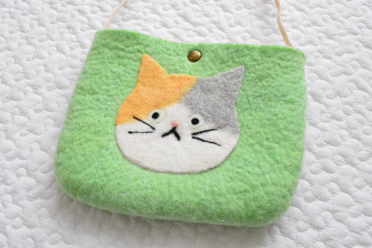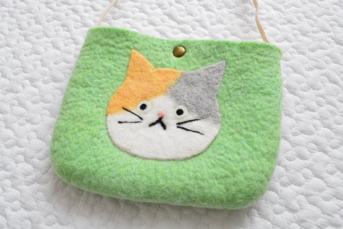 creemaにパステル三毛猫を出品しました🐈✨ 春っぽい若緑色のお鞄です🌱 creema.jp/item/13470665/… @Creema_jp #猫 #羊毛フェルト