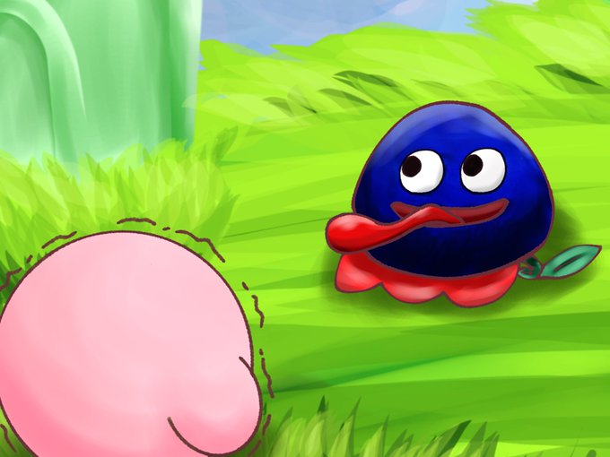 #カービィ版深夜のお絵かき60分一本勝負 目をそらすグーイ 震えるカービィ