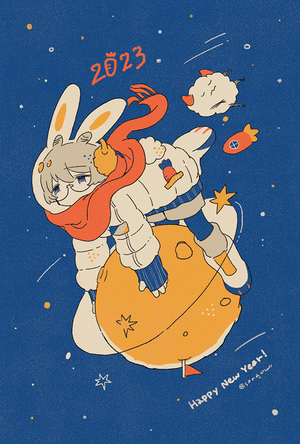Happy New Year! 今年も変わらず絵描いたり、ゲームしたり楽しむぞー よろしくお願いします!!!!! #年賀状2023