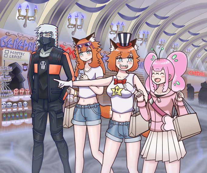 20 145 【創作】きつね姉妹と友人達 冥界のバザールでお買い物 #創作 #イラスト #イラスト初心者 23/08/04 18:15
