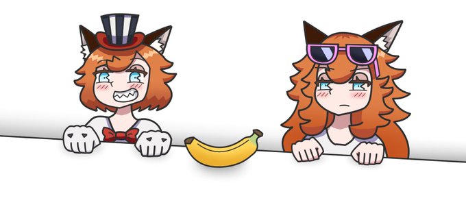 17 212 きつね姉妹とバナナ #創作 #イラスト #イラスト初心者 22/10/22 14:20