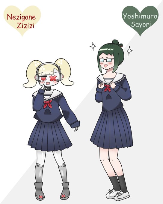 11 161 ぽんこつロボJKとそのファンのJK キャラ名:捻金 じじじ (左) & 吉村 さより (右) #創作 #イラスト #イラスト初心者 23/01/28 17:38