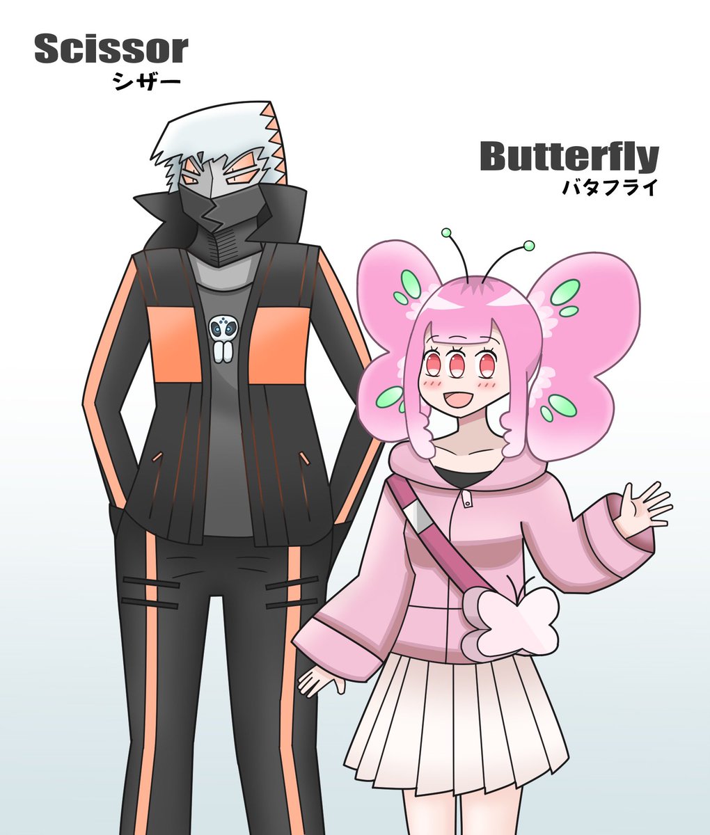 三眼女子と四眼男子 キャラ名: シザー&バタフライ (詳細はpixivにて) #創作 #イラスト #イラスト初心者