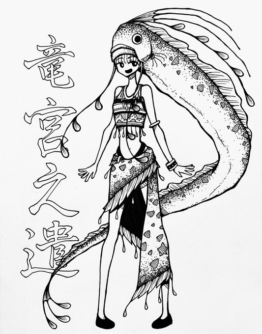 『竜宮之遣』 #イラスト #ペン画 #擬人化 #リュウグウノツカイ #女の子