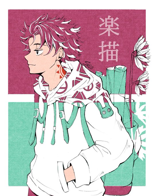 なかばやしさん( @nbs_illust ) と絵柄交換コラボしました ポーズはピンタレストのものを 参考に。 女の子滅多に描かんので 大変やったけど楽しかった🌸 #イラスト #illustration
