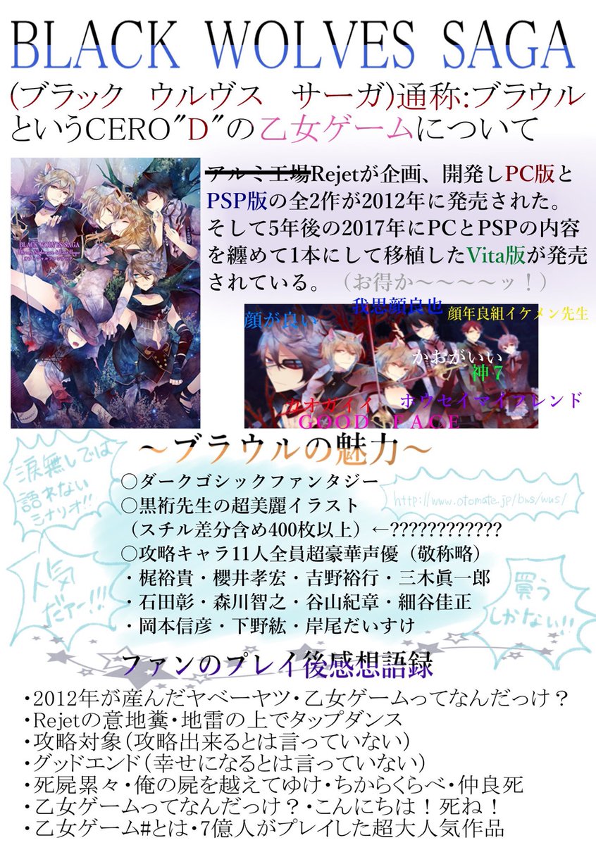 411 608 BLACK WOLVES SAGAっていう2012年に発売されたCERO"D"の乙女ゲームについて……………… 19/12/23 23:20