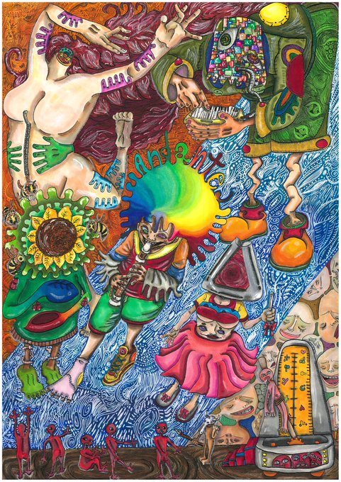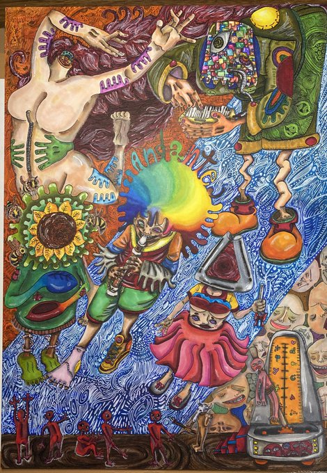1 6 縦横116センチのおっきいやつカラーでやってまーす。 良かったら見に行ってね❤︎ #イラスト #ペン画 23/05/05 06:20