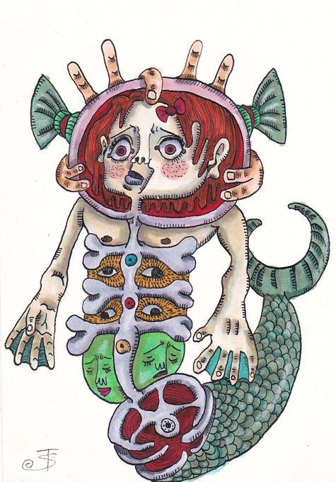 2 7 プリンセスマーメイド明美。 #イラスト #ペン画 #art #illustration #アナログ #絵 #コピック 23/06/17 08:32