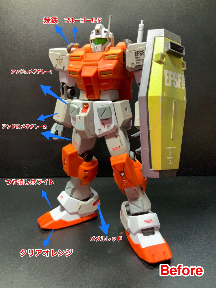 #下から煽りって素敵やん #ガンプラ #ガンプラ好きと繋がりたい #鉄血のオルフェンズ #ウェザリング 第一次ウェザリング シェードブルーのフィルタリキッドとリアルタッチマーカー とスポンジを使いました まだまだこれからですね〜(o^^o) ←Before →After