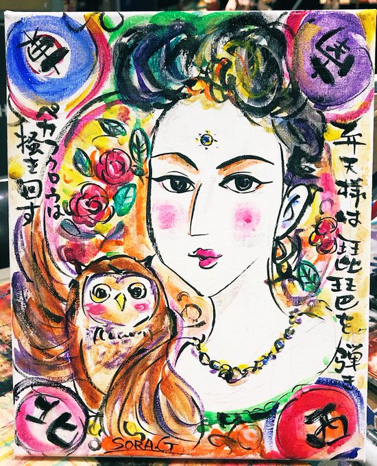 3 29 弁天様とペカフクロウ #イラスト #冬の創作クラスタフォロー祭り #絵描きさんと繋がりたい #絵画 #アート #弁天 #ヤフオク #イラスト #イラスト好きと繋がりたい #弁天様のイラスト #梟 22/02/17 12:00
