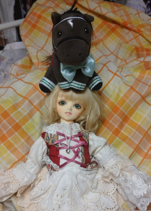 #今夜のドール撮影120分一本勝負 お題:━━━ 大概の場所に座れてしまうツカサと小さいサイズのアイドルホースでも安定して乗れためろちの夢の共演(構図的な意味で)。 なおどちらもオーナーべったりに育った模様。