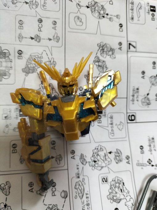 僕が外出していた2時間で長男(7歳)が次男(4歳)が進めたフェネクス。長男、次男に教えながら右手だけしか作れなかった。今から次男と僕で武器つくります。 #ガンプラ好きとつながりたい #ガンプラの画像貼るとRTされると聞いて