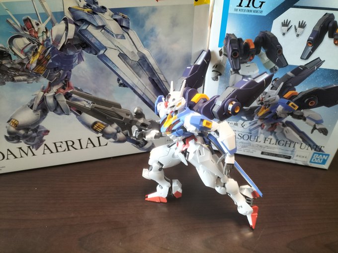 やっとエアリアルフライトユニット完成した。息子たちのエアリアルを含めるとこれで四機目のエアリアル。水星の魔女にこんなにハマるとは思ってなかったなあ。 #水星の魔女 #G_Witch #ガンプラの画像を貼るとRTされると聞いて