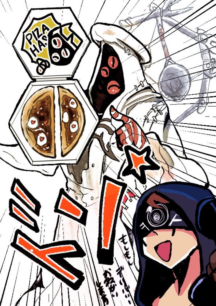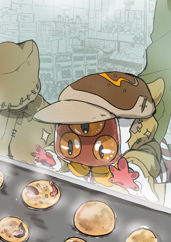#ミニ黄衣版ワンウィークドロ お題「たこ焼き」 今日はお友達のロビー君とお出かけのミニ黄衣様。たこ焼き屋にて目を輝かせています。