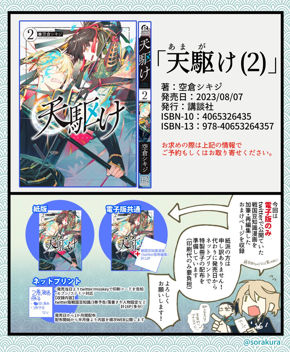 2巻発売記念冊子をネットプリントで配布します。 簡単人物紹介/twitter版戦国豆知識漫画/らくがき/3巻予告/描きおろし表紙、モノクロ計20P収録です。#天駆け 対応店舗でぜひプリントしてください。 ※印刷代200円がかかります。ページ数が多いので印刷に時間がかかるかもしれません。… twitter.com/i/web/status/1…