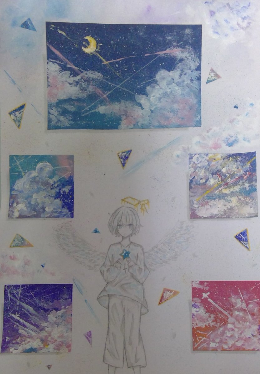 文化祭で美術部の個人製作というものが飾られるんですがそれ用に描きました!(写真の撮り方が悪い×100 アクリル絵の具です #イラスト #イラスト好きさんと繋がりたい #絵柄が好みって人がいればいいなぁ