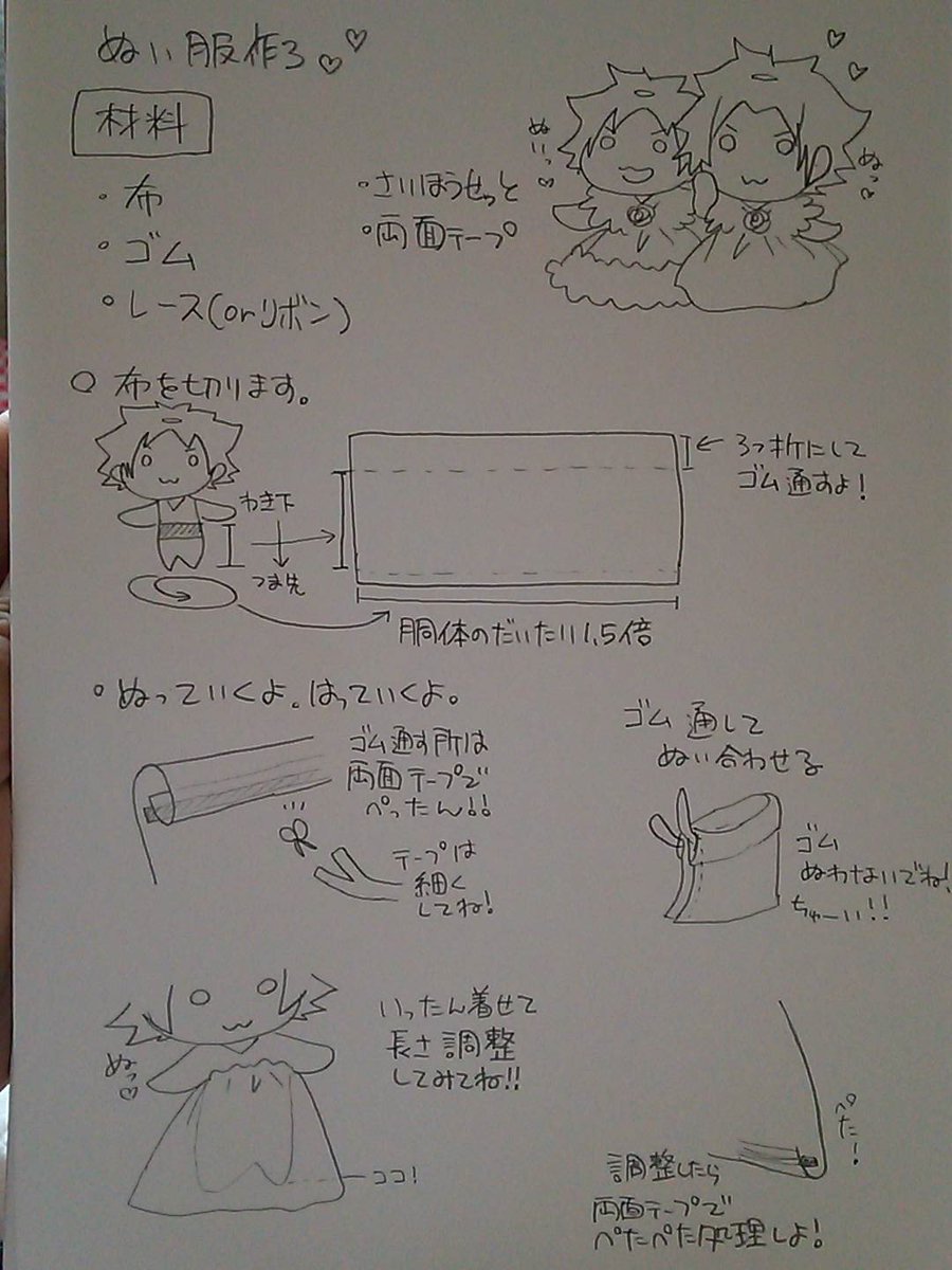 ぬい服の作り方聞かれたので、本当に簡単なバージョンのやつを描いたよ!