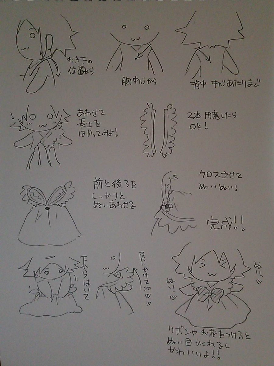 97 265 ぬい服の作り方聞かれたので、本当に簡単なバージョンのやつを描いたよ! 16/08/16 10:27