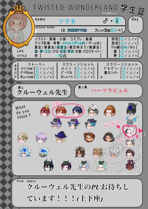 クルーウェル先生に落とされました、仔犬です🐶ハーツラビュルコンビが可愛い。主に写真を撮ったりしてます✨RT中心に♡もお迎えいかせてください🙌※雑多垢なので他にも色々呟きます。テンプレお借りしました。 #twst学生証 #twst好きさんと繋がりたい #twst絵描きさんと繋がりたい
