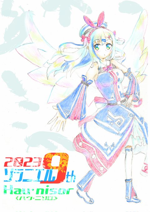 #自分の代表作だと思う絵を一枚だけ選んでみよう 最新のイラストが1番よくかけてる気がするんだけど、なんだかんだで7周年の時のこれかなぁー? タペストリーにしたくらいだし気に入ってる♪ #ソラニエル