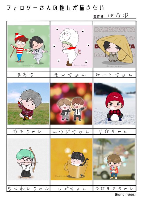 遅くなりましたが #フォロワーさんの推しが描きたい 完走しました🏃♀️💨 遅いくせに9枠で限定せず時間〆で応募かけたらありがたいことに16名のフォロワーさんに反応いただけました🥹💕 自分では選ばないような写真を提示してもらって新鮮な気持ちで描くことができてとっても楽しかった😆✨