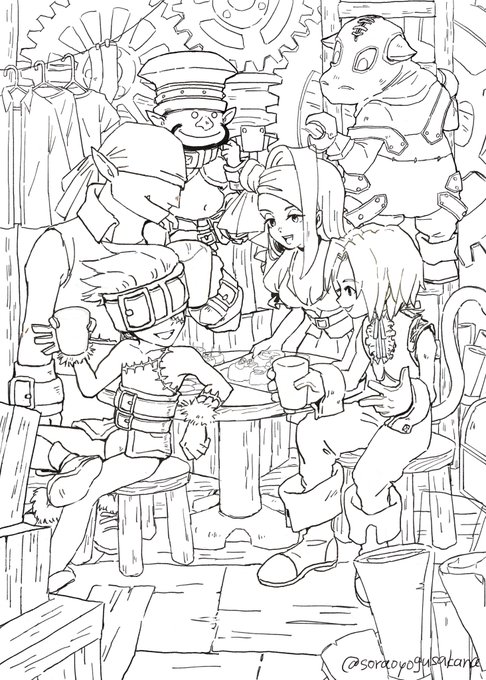 珍しくちゃんと線画描いたので良かったら塗り絵してください(笑)