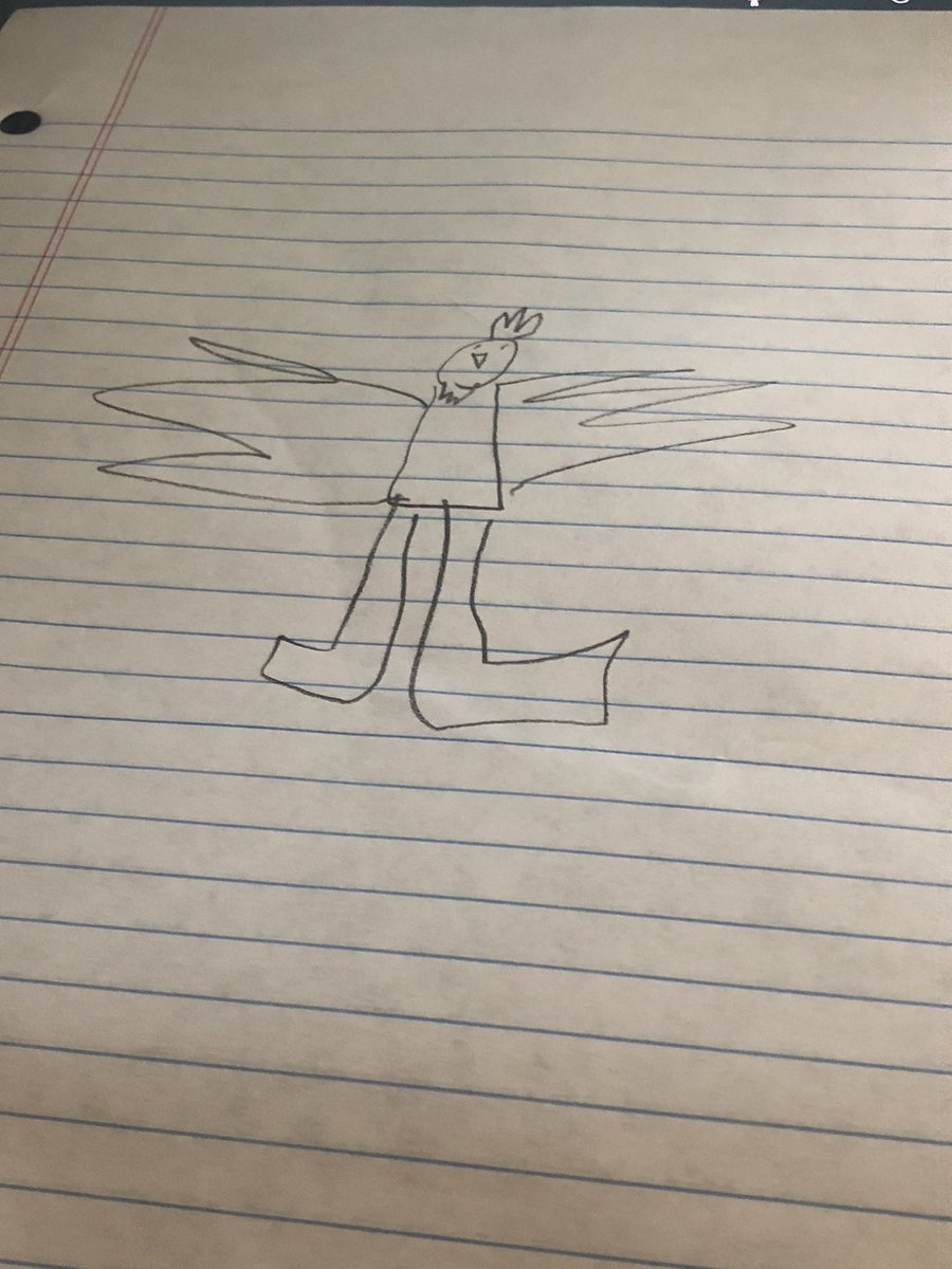 One of my students drew me as a chicken completely unprompted, sorry to dox my #kfp self, but I think this work of art belongs in #ArtsOfAshes