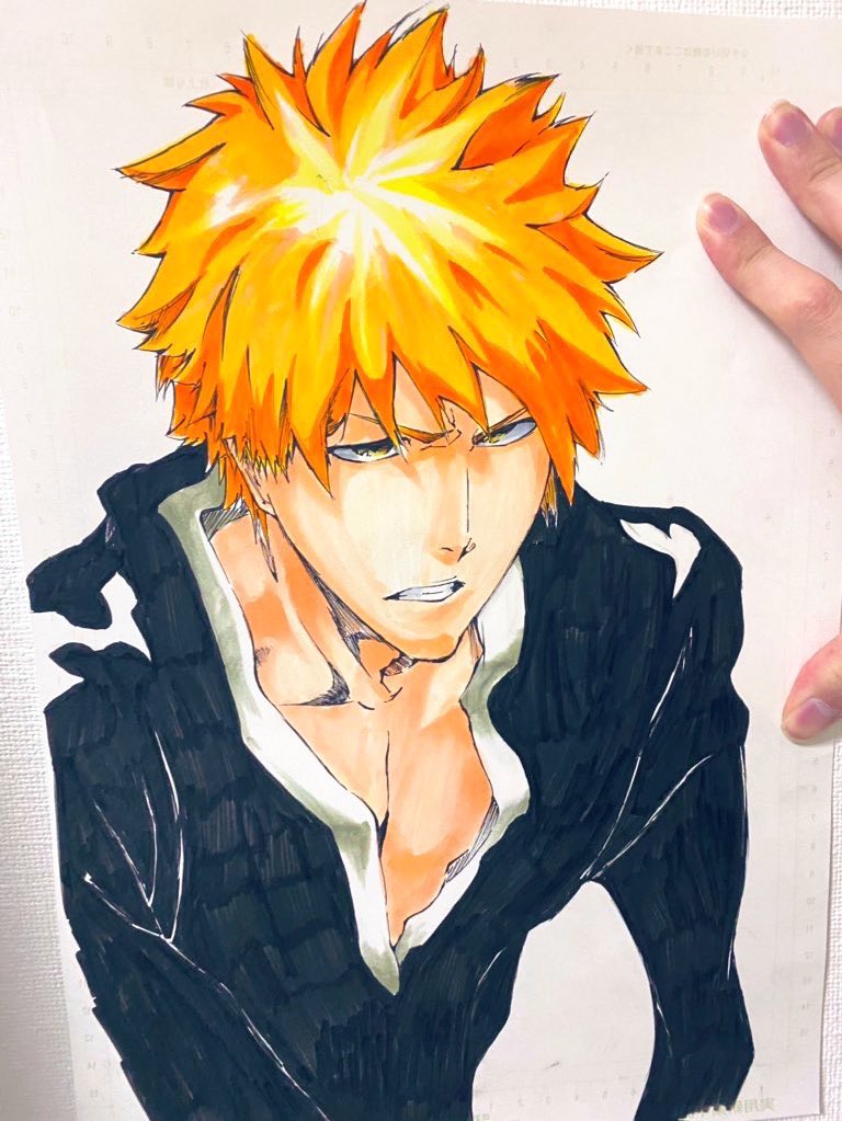 BLEACH千年血戦編、アニメ化決定おめでとうございます! 一護が好きすぎて 過去にアナログ、習字ペン、デジタル で書いてました!めちゃ楽しみィ #イラスト好きな人と繋がりたい #絵描きさんと繋がりたい #BLEACH #BLEACH_anime