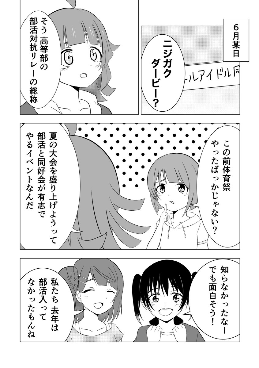【新刊】『ウマライブ!ニジガクダービー』のサンプルです 。部活動大会リレーに出ることになったしずく! 果たして誰がニジガクダービーを制するのか!! 1年生メインの熱血青春(?)ギャグ本です!!! #C100