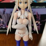 武装を組み立てるまで、アーンヴァルさんにMMSボディで布服を楽しんでもらっています😊 #メガミデバイス #武装神姫