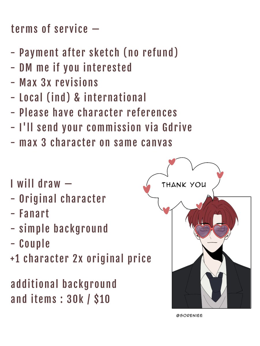 [Rts are appreciated ❤️] ☆ Open Commission ☆ Hello, i'm opening commission for local (ind) & international, 5 slot only!! If you interested feel free to dm me. #commissionsopen #commission