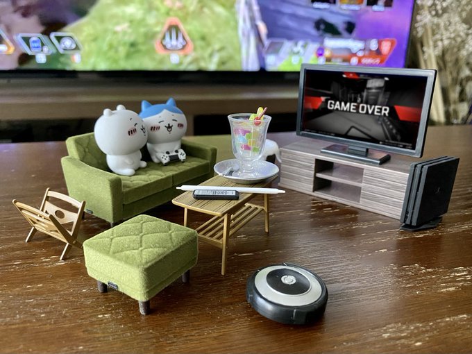 セリアで衝動買いしてもうた。 「負けちゃった!もうちょっとだったねー」 「フフッ…ネー……」 #ちいかわ #オモ写