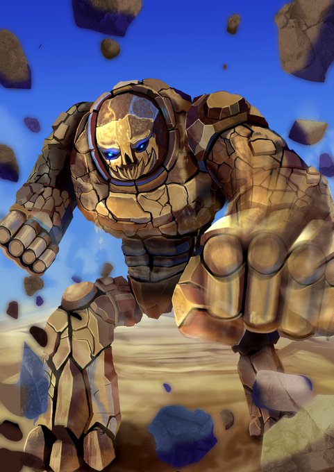 4巡目:岩のゴーレム 岩の質感大分良くなった気がする! 描き込みで発狂しかけたけど、1週間でここまで処理できたのは成果出てるかも! やっぱお絵描き楽しいねぇ😆 #3ヵ月上達法 #3ヵ月でさいとうなおきを倒す #クリーチャー #絵描きさんと繋がりたい