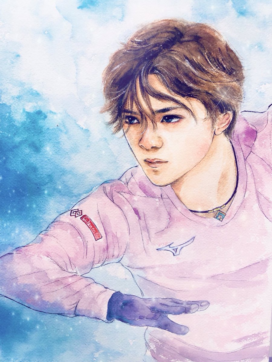 いよいよスケカナ❗️昌磨くんがんばれ🔥 #宇野昌磨 #GoodluckShoma #透明水彩 #ソフトパステル #ウォーターフォード f6 #スケートカナダ #skatetober2022