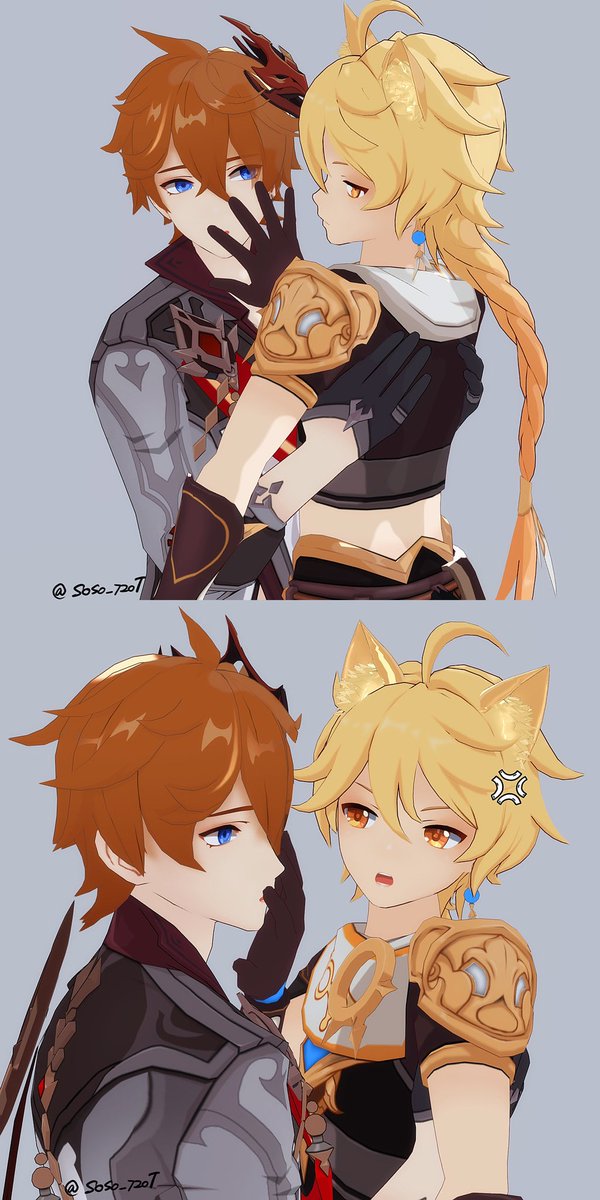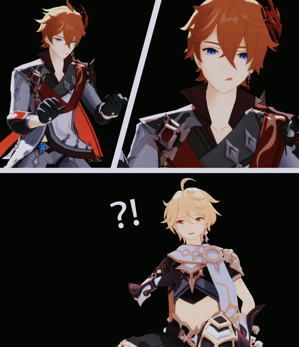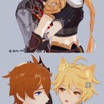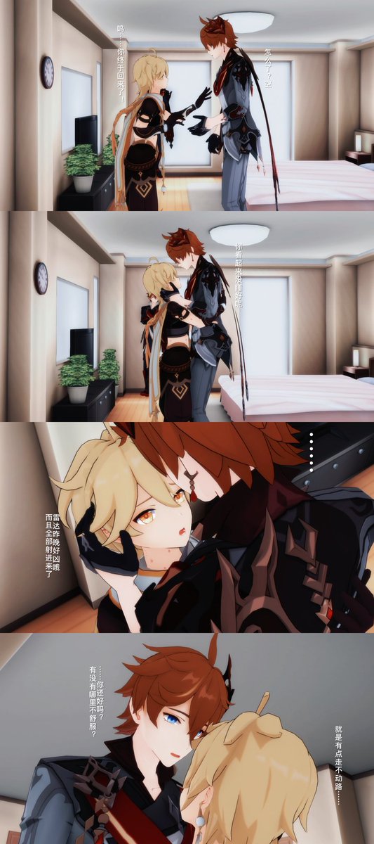 128 1414 (旅行者和公子好像在吵架) 「都說了不要留下痕跡啦!」 「抱歉抱歉⋯⋯沒有忍住」 #タル空 #childeaether 22/10/28 02:25