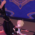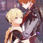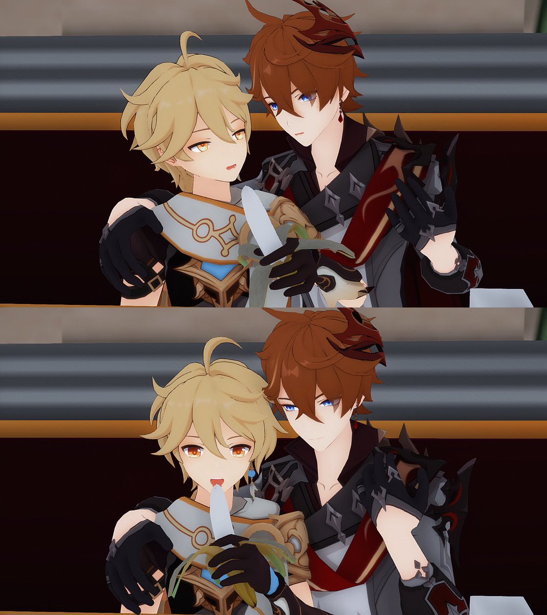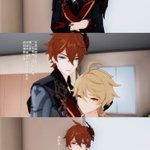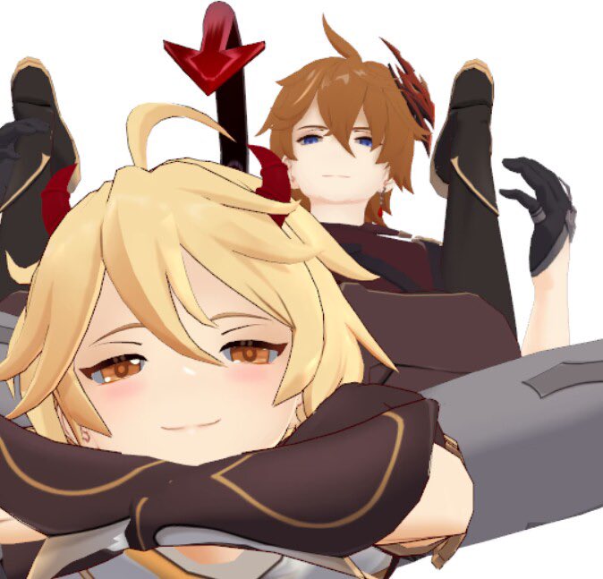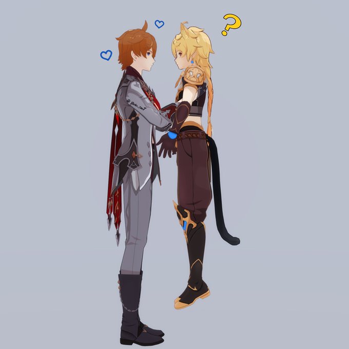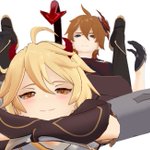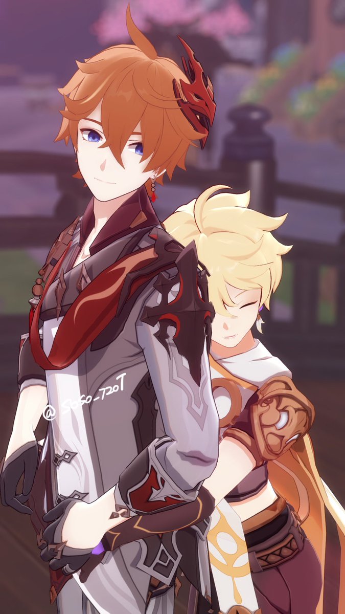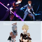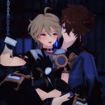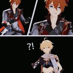 (旅行者和公子好像在吵架) 「都說了不要留下痕跡啦!」 「抱歉抱歉⋯⋯沒有忍住」 #タル空 #childeaether