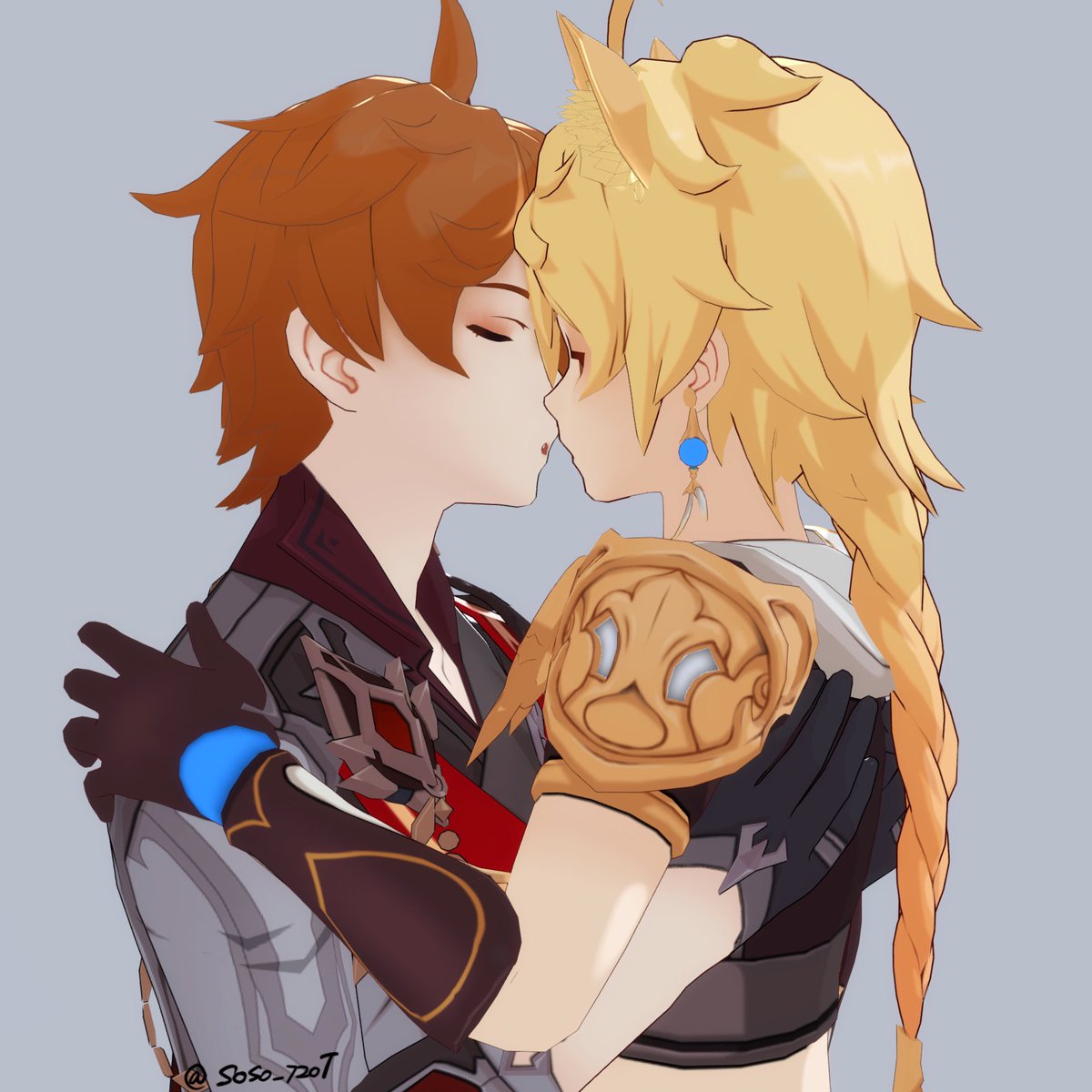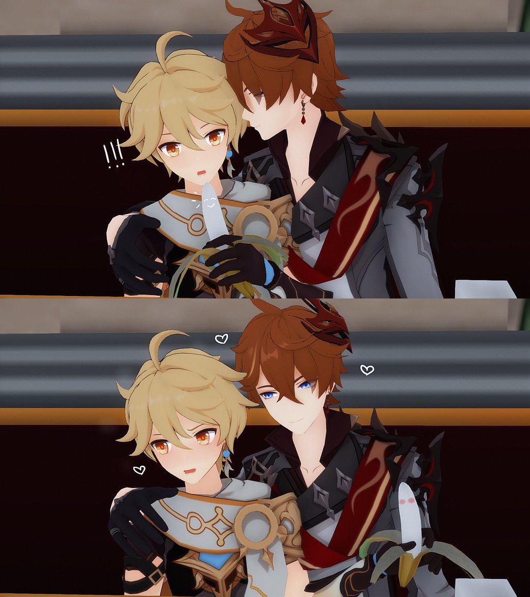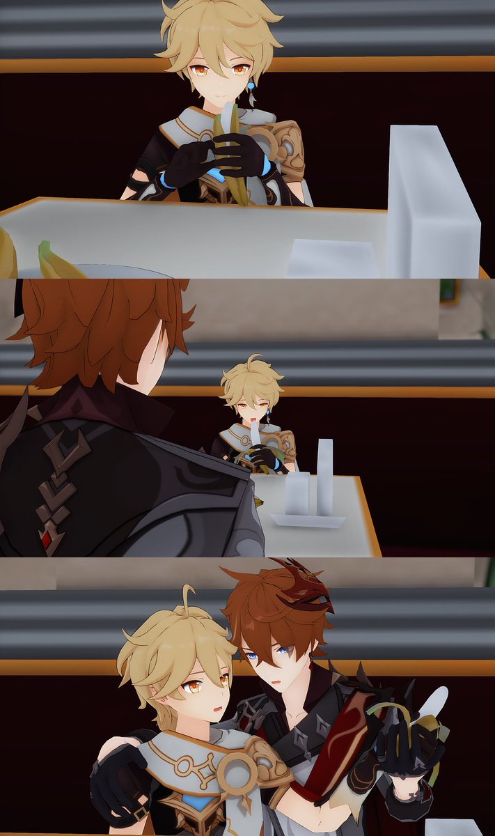 (旅行者和公子好像在吵架) 「都說了不要留下痕跡啦!」 「抱歉抱歉⋯⋯沒有忍住」 #タル空 #childeaether