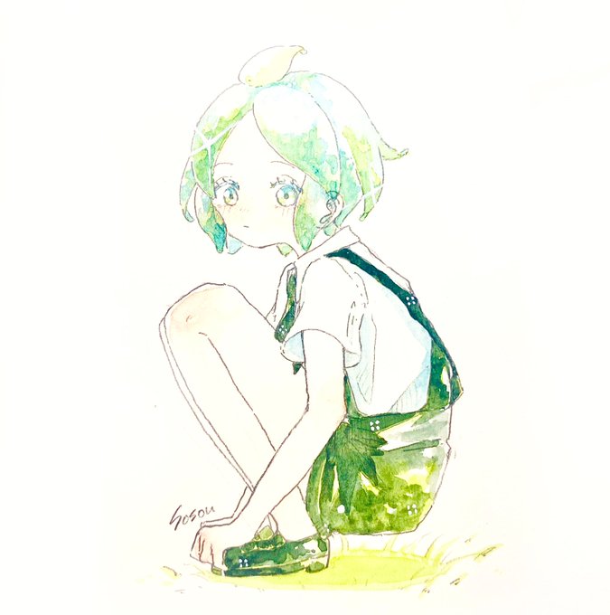 # 自分の絵柄の特徴あげてもらってそれを全部封印した絵を描く 封印:温かみ、笑顔、風感、薄い影、淡い色 ありがとうございました!