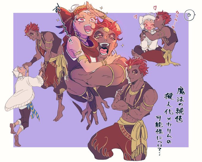めちゃくちゃいかちぃカッケー(擬人化)絨毯くんのめちゃくちゃ可愛い中身の根源部分にあるスパダリ成分からでしか得られない養分がある そしてこれは前にリクもらって描いたラクガキたち ※擬人化絨毯/絨カリ