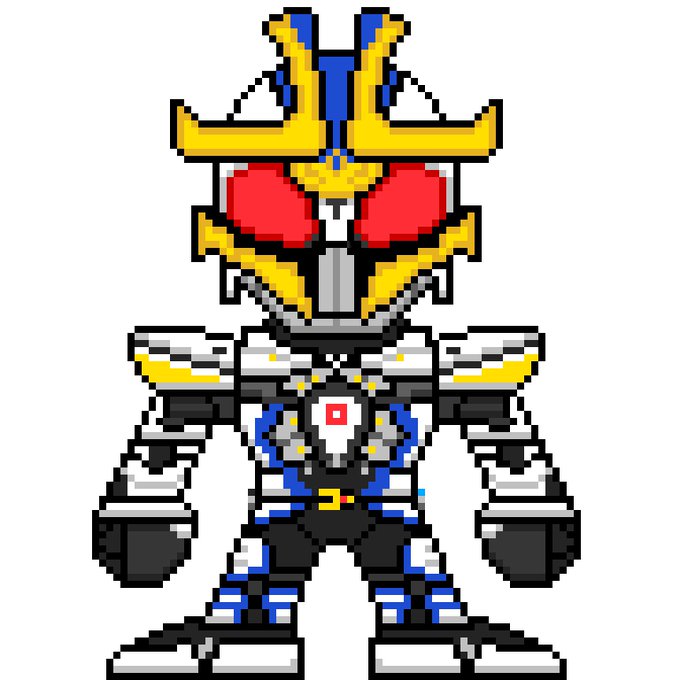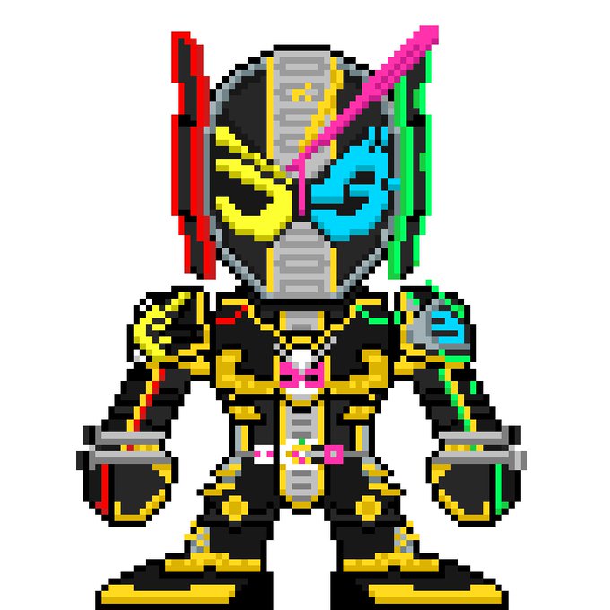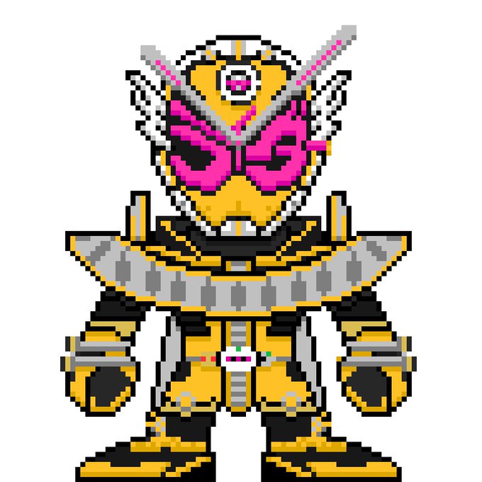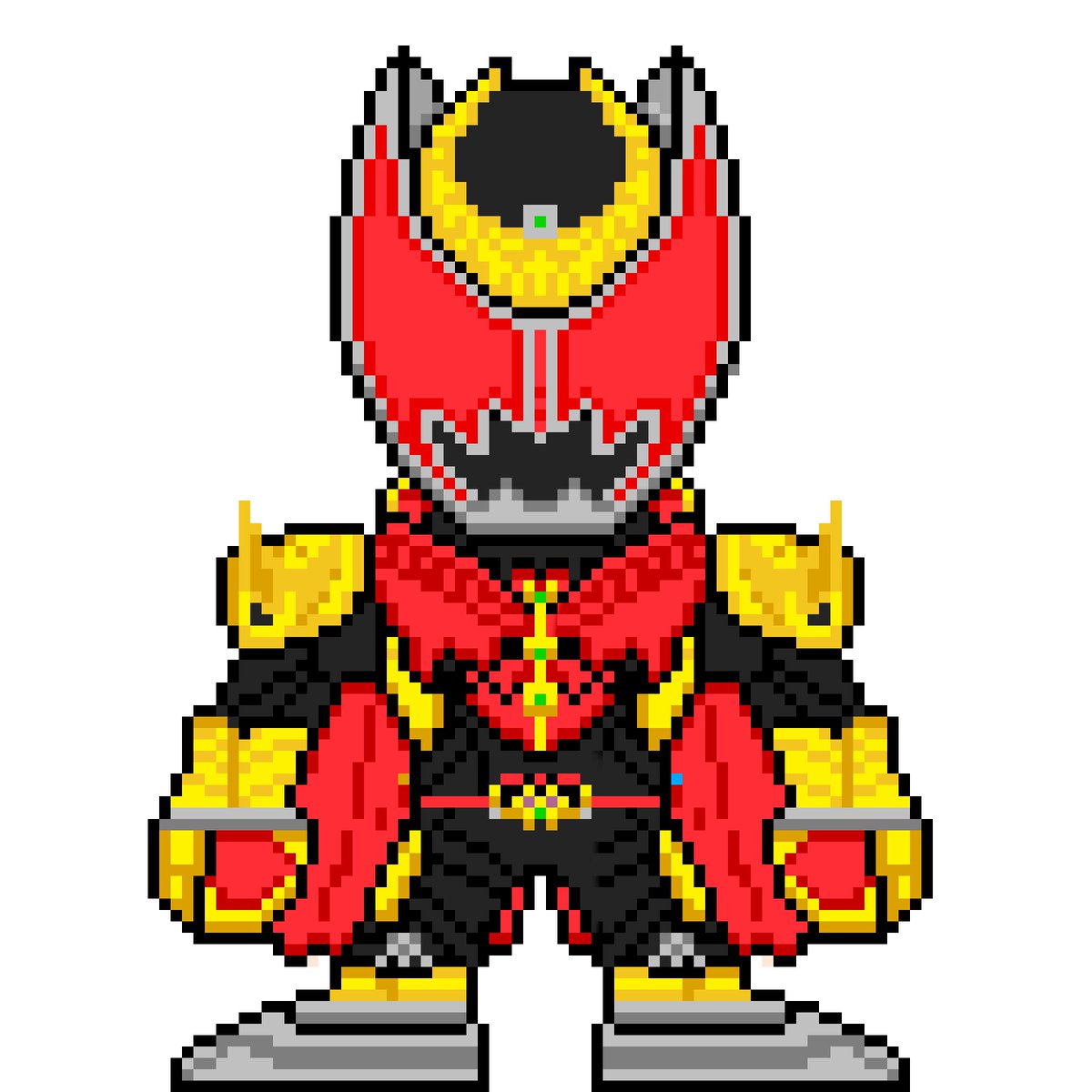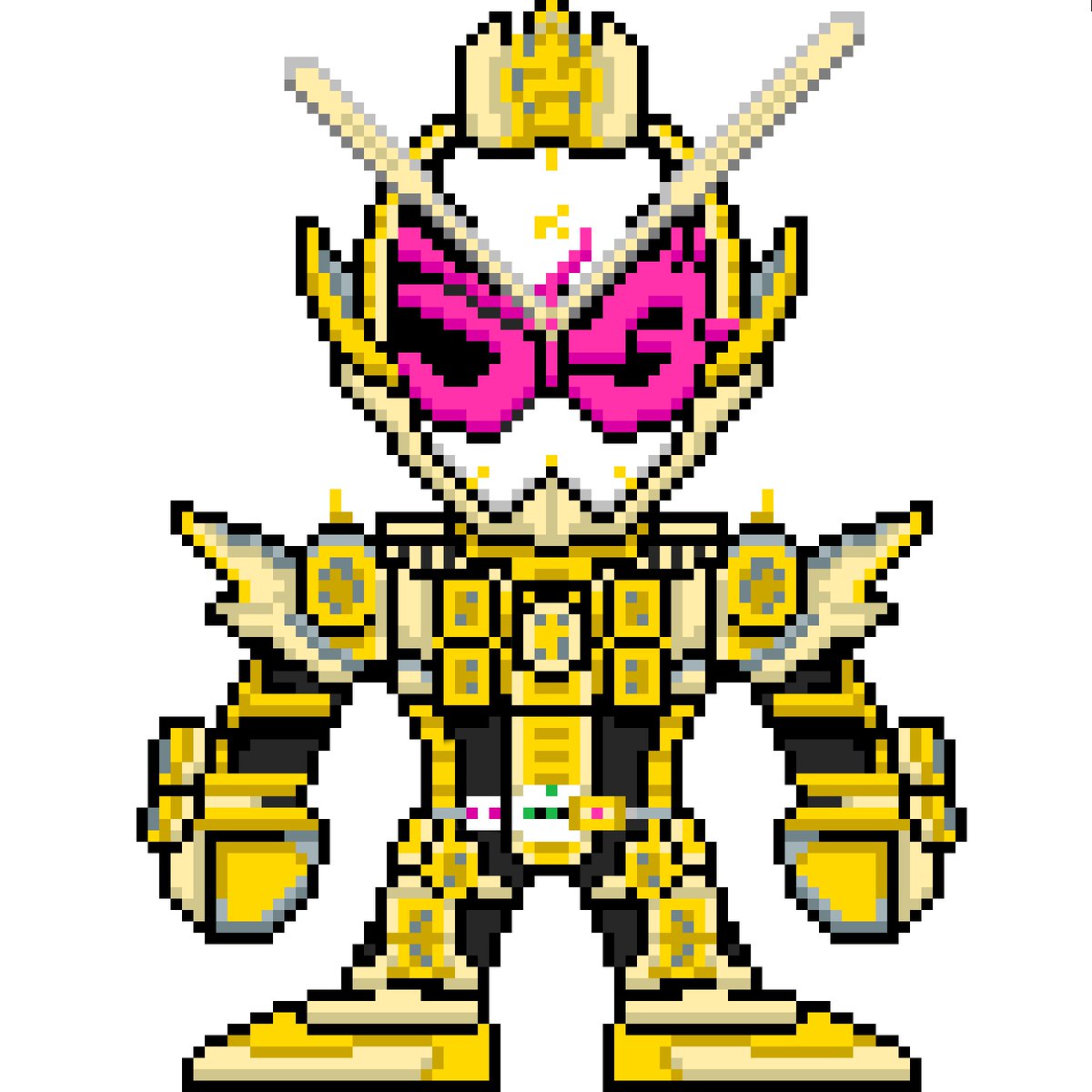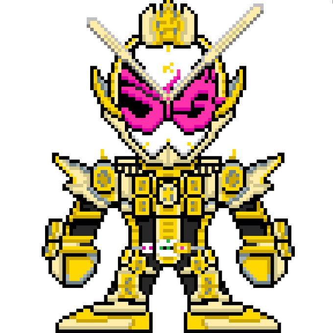 #ドット絵 #仮面ライダー ! 今回は #仮面ライダージオウ より、 グランドジオウです!(残りは最強のおまけw) いやー、ドット絵では再現出来ない元デザインの細かさw なので細かいところじゃなく、 全体のイメージを大切に作ったので、どうぞ遠くから見てください!w #超ドット絵ヒーローズ