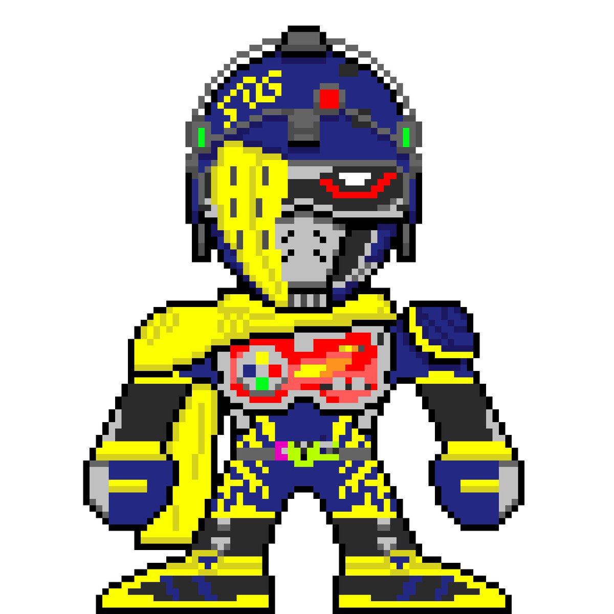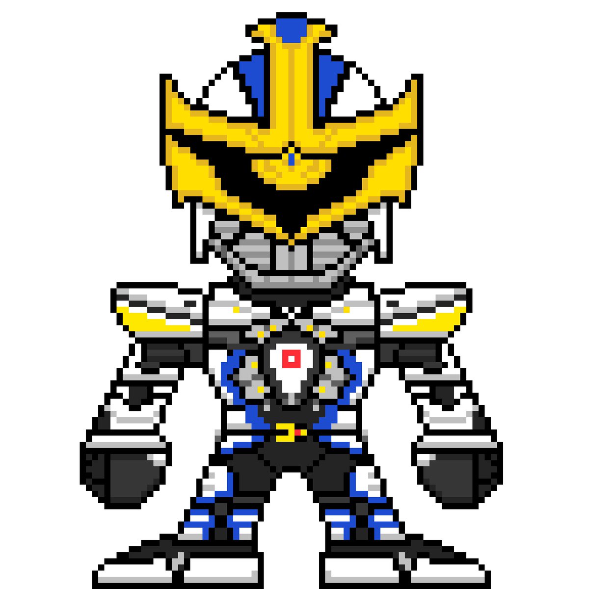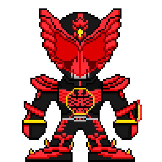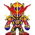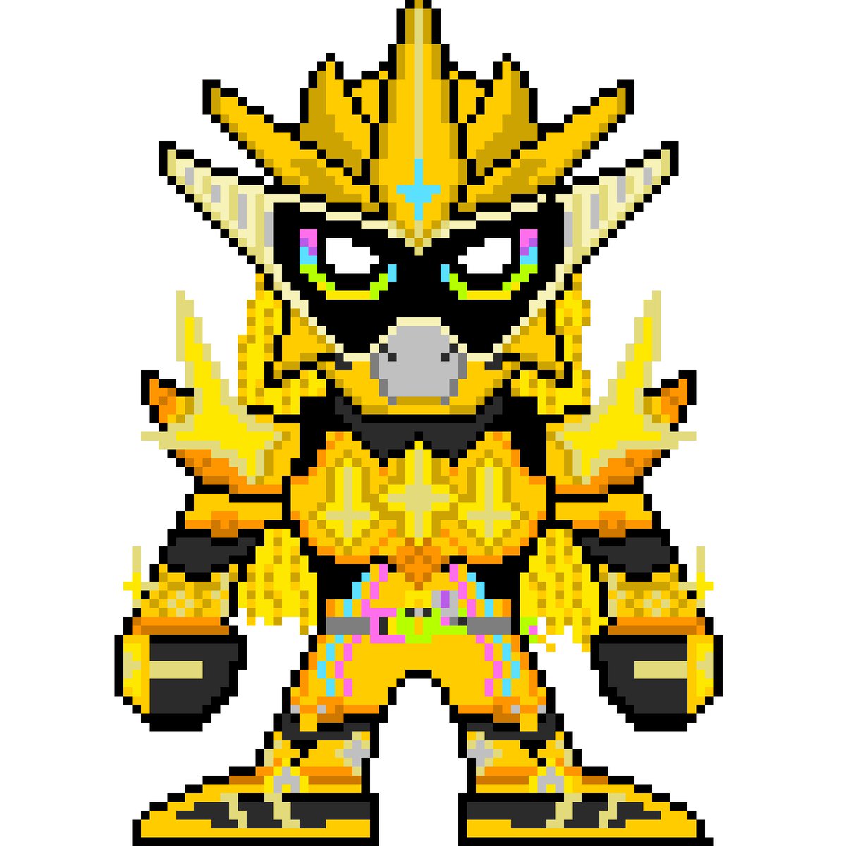#ドット絵 #仮面ライダー ! 今回は #仮面ライダージオウ より、 グランドジオウです!(残りは最強のおまけw) いやー、ドット絵では再現出来ない元デザインの細かさw なので細かいところじゃなく、 全体のイメージを大切に作ったので、どうぞ遠くから見てください!w #超ドット絵ヒーローズ