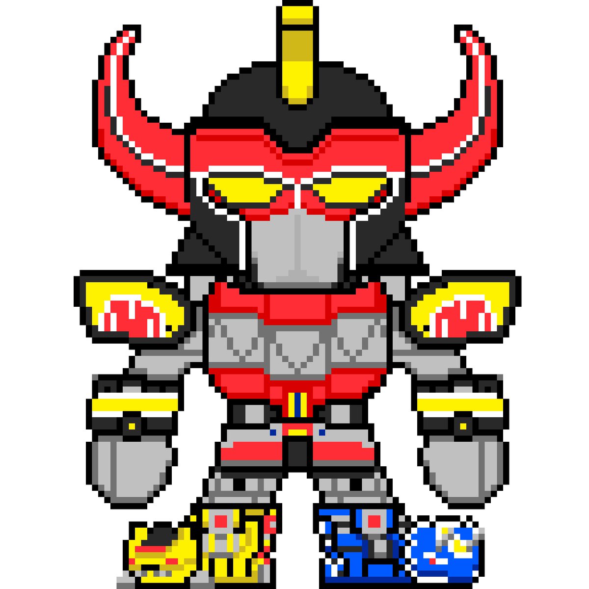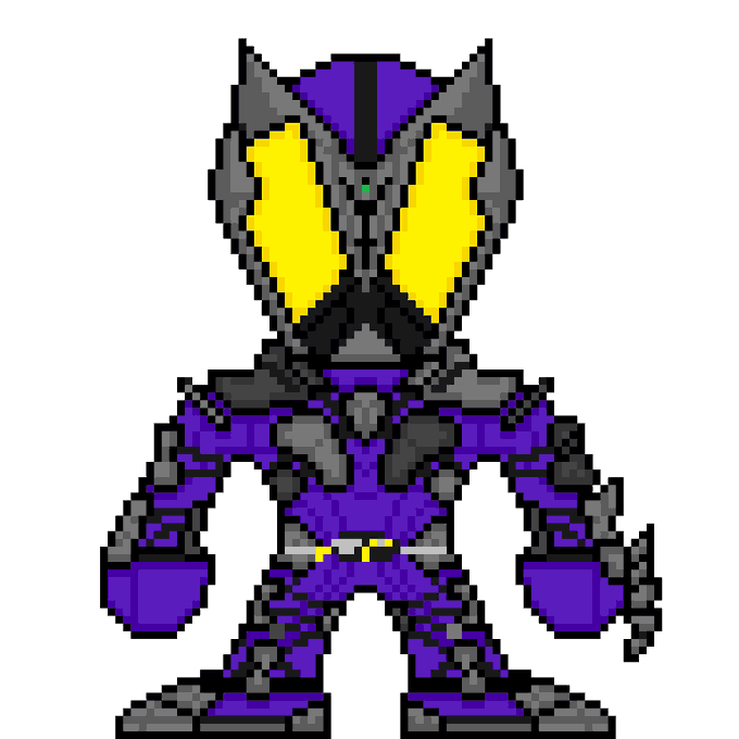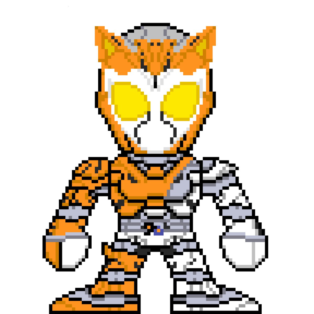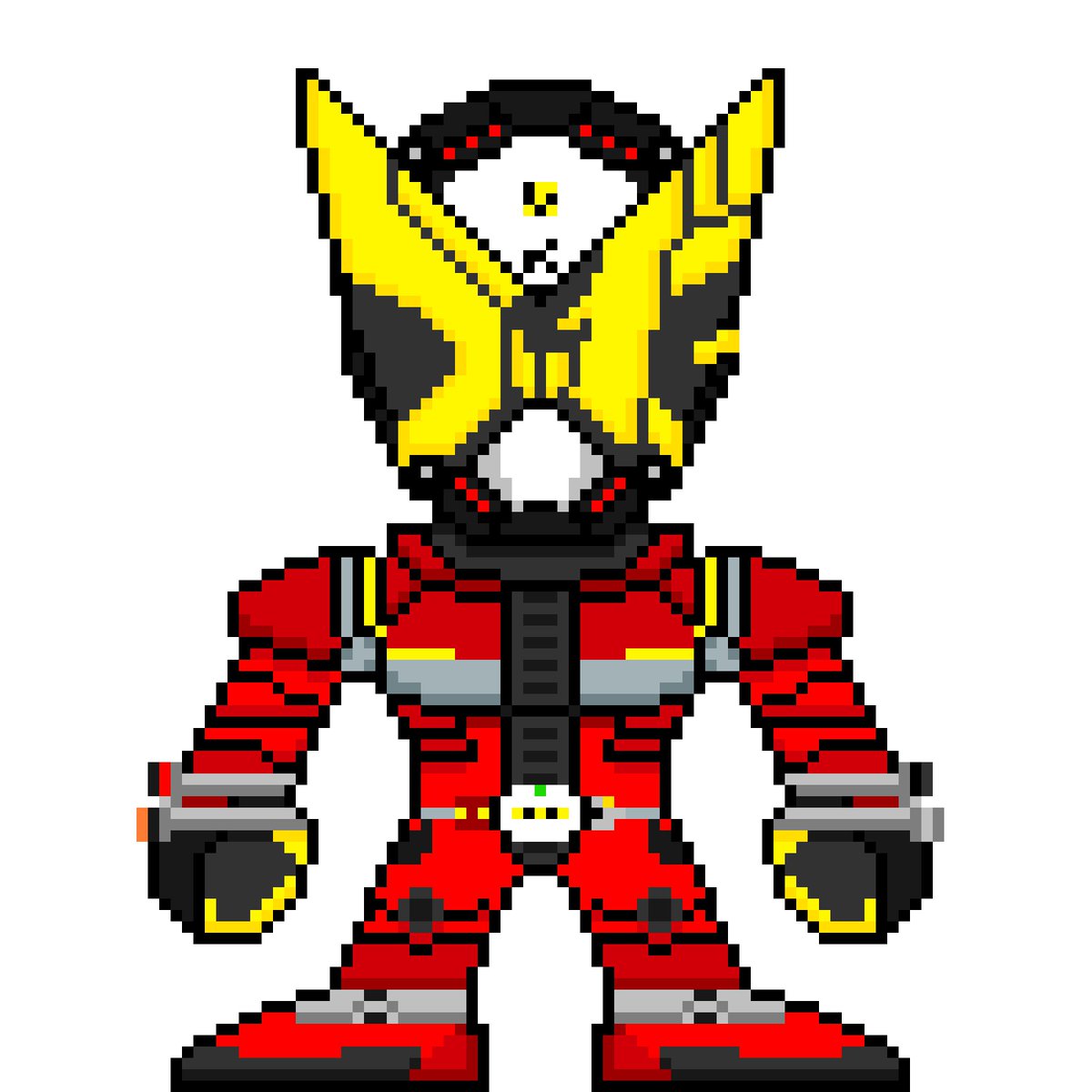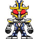 #ドット絵 #仮面ライダー ! 今回は #仮面ライダージオウ より、 グランドジオウです!(残りは最強のおまけw) いやー、ドット絵では再現出来ない元デザインの細かさw なので細かいところじゃなく、 全体のイメージを大切に作ったので、どうぞ遠くから見てください!w #超ドット絵ヒーローズ