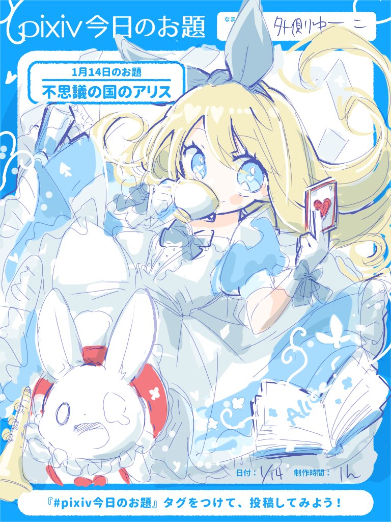 #pixiv今日のお題 #sensei #不思議の国のアリス 今日はもう一枚描いたから寝ようかと思ったけど、お題が大好きなアリスだったので描きました〜 sketch.pixiv.net/items/44569161…