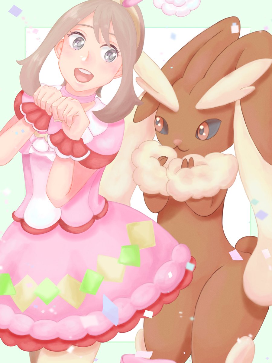 イースター ハルカ&ミミロップ ウサ耳ポーズのハルカちゃん可愛すぎる! #ポケマスアート #ポケモンイラスト