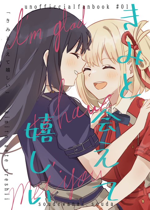 9/10(日)に開催されるリコリコオンリーにて頒布する予定の本です🙏 きみと会えて嬉しい A5/20p/¥400(会場価格) ・ハワイ帰国後 ・付き合ってない ・明確な左右はありませんが、気にされない方向け(双方照れ展開あり) ツリーにサンプルとアンケート吊り下げるのでご覧ください〜!