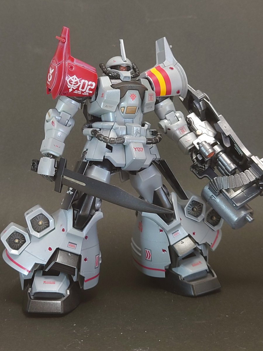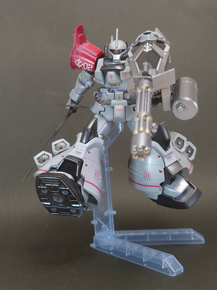 グフ・フライトタイプ完成しましたー! ガトリングシールドのメカメカしさとドム並に太い脚が最高に刺さりました ラインデカールを初めて貼りましたがあまりキレイではないのでちゃんと貼れるように練習しなきゃです #ガンプラ #ガンプラ好きと繋がりたい #ガンプラの画像貼るとRTされると聞いて
