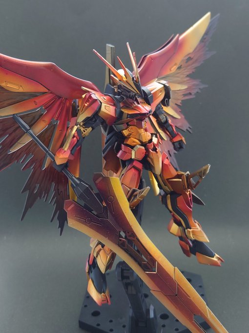 ラースアストレイ、完成しました〜 ロードアストレイとデスティニーのミキシングで、モチーフはモンスターハンター4Gのミララースです。 グラデーションで燃え盛る炎っぽい表現をがんばりました #ガンプラ #ガンプラはどんな自由な発想で作ってもいいんだ #ガンプラの画像を貼るとRTされると聞いて