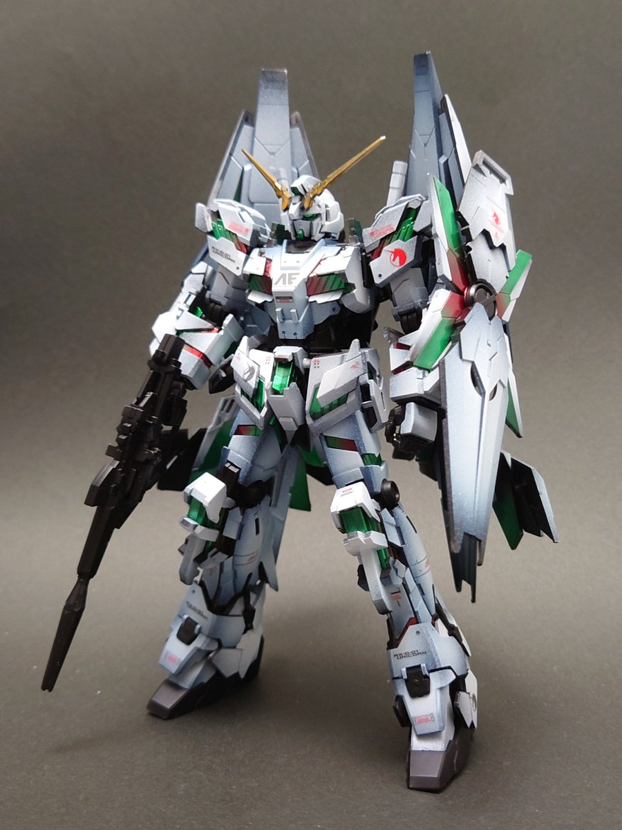 ユニコーンガンダム、完成しましたー サイコフレームは覚醒をイメージしてレッドとグリーンのグラデーションをつけたキャンディ塗装をしました。 どの武装を持たせても超カッコいいし夢のアームドアーマーDE2枚背負い出来て大満足です! #ガンプラ #ガンプラの画像貼るとRTされると聞いて