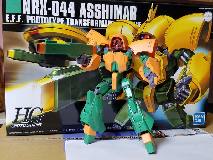 台座はまだ組み立てていませんが。 HGUCアッシマー出来ました。 え? どこか可笑しいって? ふうん…🐤 #ガンプラの画像貼るとRTされると聞いて #ガンプラ好きな人と繋がりたい #HGUC #アッシマー