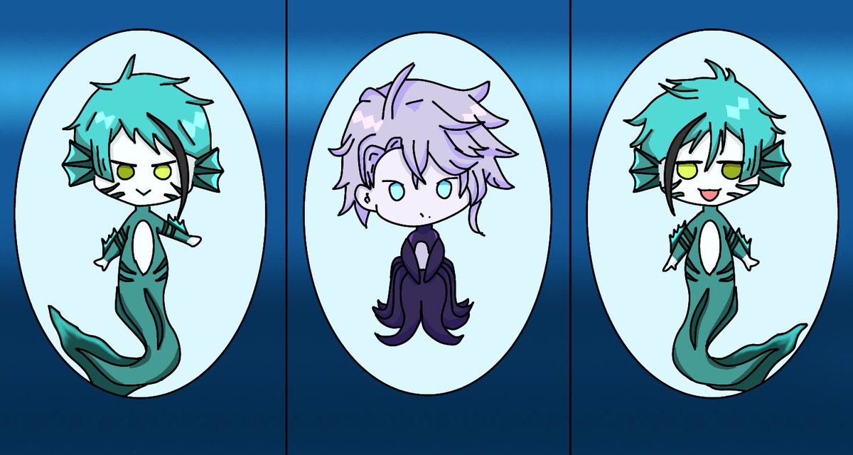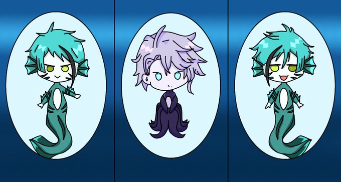 #twstファンアート 以前描いた🐬と🦈の尾鰭を描き直ししました 気をつけないと💦